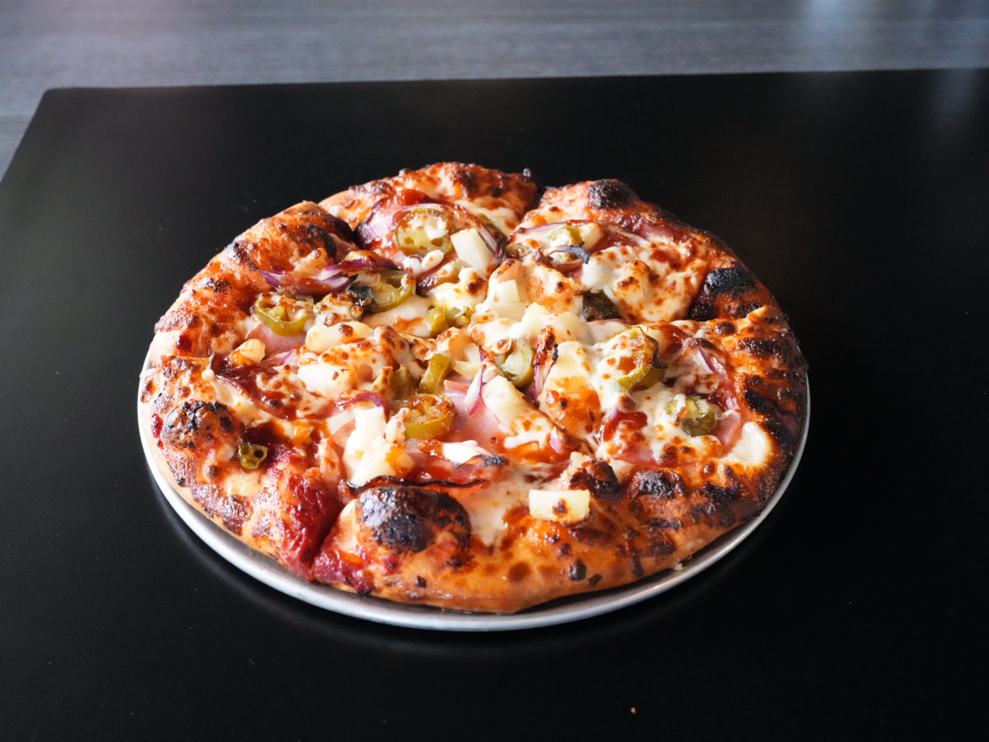 Pizza was delicious and service was great, friendly staff. Great atmosphere for watching sports. Full bar with our favorite beer. Highly recommend.